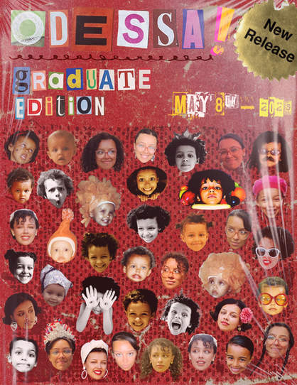 Physical mixed media collages using a variety of materials, e.g., paint pens, vellum paper, oil pastels, found photographs, etc.